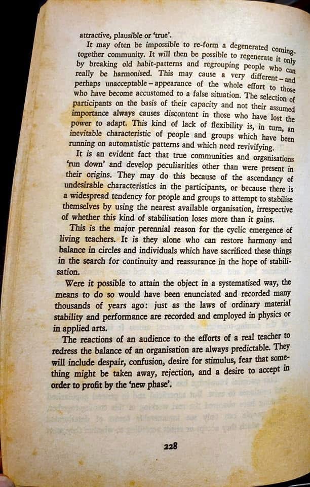 Shah makes one final distinction of immense importance when he says there are two kinds of community: one produced and maintained by what is today called indoctrination, and the other accumulated and harmonised by starting with the right materials and the right knowledge. That line draws a border we urgently need. Not every gathering is a community in the deeper sense. Not every shared belief produces harmony. Not every declared mission carries truth. Some communities are held together by repetition, pressure, belonging, fear, and conditioned loyalty. Others are formed through a more exacting relation to reality, where the right materials and the right knowledge create the possibility of true harmonisation. The first kind may be louder and more visible. The second is rarer, quieter, and more demanding.