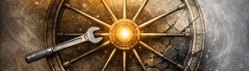 To repair a buckled wheel, one does not smash the rim. One uses a spoke spanner, tightening here and loosening there, restoring proportion across the whole structure. The work is precise and patient. Spiritual reorientation, when authentic, functions in a comparable way. It does not erase history or deny wound. It restores governing balance.